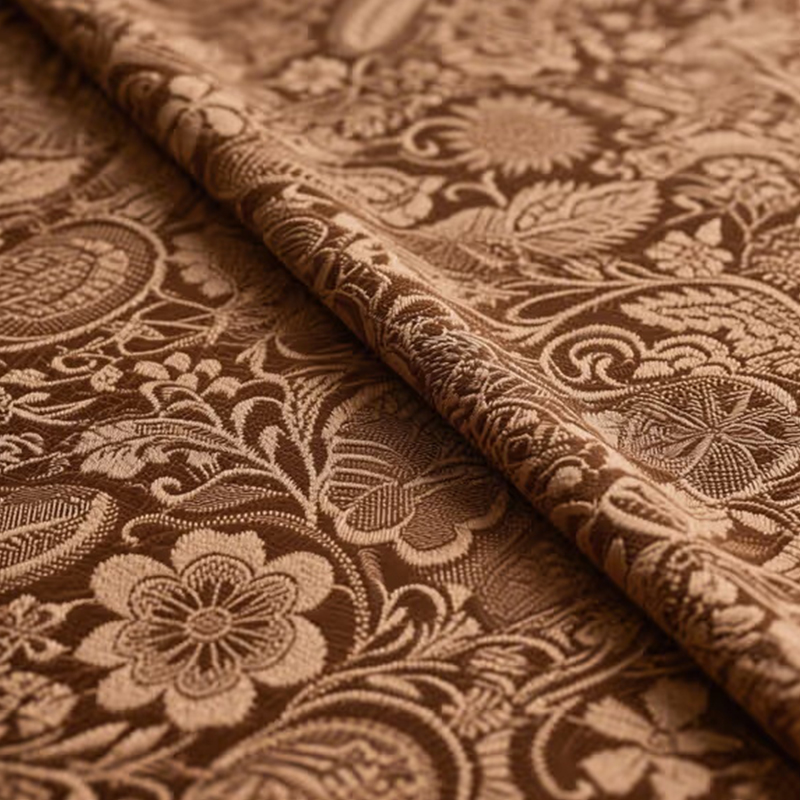 قماش الجاكار المزدوج هو قماش جاكار مزدوج الجوانب، منسوج على نول مزدوج الجوانب، ويقدم أنماط جاكار رائعة على كلا الجانبين. تم تصميم كل جانب من النموذج بعناية، وعادة ما يكون في شكل متماثل أو تكميلي، مما يعزز الطبقات البصرية والشعور التصميمي للنسيج. إن توفر هذا القماش على الوجهين لا يجعله جميلًا فحسب، بل يجعله أيضًا متعدد الاستخدامات وقابل للتكيف مع احتياجات التصميم المختلفة. يمنح النسيج السميك لهذا القماش احتفاظًا أفضل بالدفء، وهو مناسب لتصميم الملابس في الخريف والشتاء. نظرًا للنسيج عالي الكثافة والحرفية الدقيقة، فإن القماش متين للغاية ويمكنه تحمل الاستخدام طويل الأمد، وليس من السهل تشويهه أو بهتانه. تعمل عملية النسيج على الوجهين على تعزيز ملمسه وإحساسه ثلاثي الأبعاد، مما يجعل القماش أكثر طبقات بصريًا، مما يوفر تأثيرًا أنيقًا ومتطورًا.