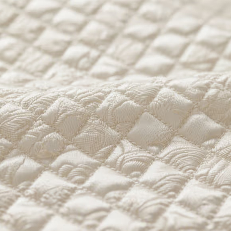 قماش الديباج المقلد ذو المربعات هو نسيج راقي منسوج بتقنية الجاكار الرائعة. يقدم السطح نمطًا متقلبًا مع إحساس ثلاثي الأبعاد وطبقات كبيرة. من خلال عملية الجاكار الفريدة، لا يُظهر القماش تأثيرًا رقيقًا للملمس فحسب، بل يضيف أيضًا تأثيرًا بصريًا قويًا، مما يوفر بريقًا فاخرًا ومنخفض المستوى. هذا القماش مناسب جدًا للاستخدام في مجالات مثل حقائب الموضة وربط تزيين الملابس. إن ملمسه الناعم وتأثيره ثلاثي الأبعاد يجعله نقطة محورية في أي تصميم، وهو مناسب بشكل خاص لتعزيز الدرجة الإجمالية والقيمة الجمالية للمنتج. ويعزز الإحساس ثلاثي الأبعاد للنسيج من ديناميكيته البصرية، مما يجعله يبرز في تصميم الحقائب والملابس، ويسلط الضوء على رقي وفخامة المنتجات الراقية.