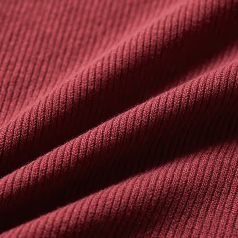 القماش المخملي المضلع 1*1 هو نسيج يستخدم عملية نسج بإبرة واحدة لأعلى وإبرة واحدة للأسفل، والسطح مغطى بالمخمل الناعم (المخمل الناعم)، الذي يتميز باحتفاظ ممتاز بالدفء ولمسة ناعمة. هيكل النسيج المضلع يجعل القماش مرنًا للغاية، ويمكن أن يتناسب بشكل وثيق مع الجلد، ويوفر تجربة ارتداء مريحة، ومناسب بشكل خاص للاستخدام في المواسم الباردة. السطح المخملي للنسيج ليس ناعمًا ورقيقًا فحسب، بل يعزز أيضًا الراحة، ويمكنه أن يحبس الدفء بشكل فعال ويمنع دخول الهواء البارد. يتمتع هذا القماش باحتفاظ قوي بالدفء وهو مناسب للملابس الشتوية، وخاصة أطواق السترات وأحزمة الخصر، مما يوفر المزيد من الدفء والدعم لهذه الأجزاء. يمنح تصميمه المضلع 1*1 النسيج مرونة أفضل، مما يسمح للنسيج بالتمدد والانكماش بحرية، مما يضمن الملاءمة والراحة عند الارتداء.
