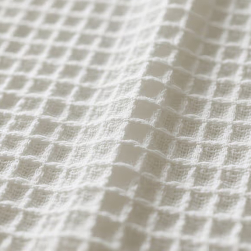 Waffle Knit Comfort Fabrics عبارة عن قماش منسوج بنسيج مقعر ومحدب فريد يشبه الشبكة. سطحه على شكل كعكة الوافل، التي تتميز بقدرة تهوية ممتازة وامتصاص ممتاز للعرق. يسمح هذا الهيكل للنسيج بامتصاص الرطوبة بشكل فعال والتخلص من العرق بسرعة، مما يحافظ على جفاف الجلد. إنه مناسب للارتداء أثناء ممارسة التمارين عالية الكثافة، ويمكنه امتصاص العرق وتبخره بسرعة لضمان الراحة أثناء التمرين. خفة ونعومة نسيج Waffle Knit تجعله مريحًا جدًا للارتداء في الصيف. ويستخدم على نطاق واسع في إنتاج القمصان الصيفية والملابس الأخرى للحفاظ على برودة الجسم في الطقس الحار. نظرًا للتهوية الجيدة ووظيفة التخلص من العرق، فإن هذا القماش مناسب جدًا لصنع المناشف الرياضية لمساعدة الرياضيين على مسح العرق بسرعة والبقاء جافًا أثناء التمرين.